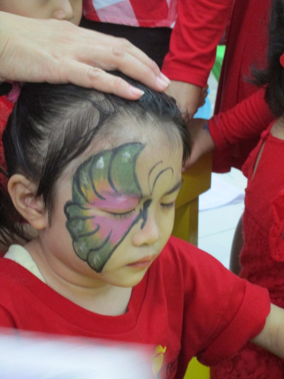 Face Painting adalah salah satu seni melukis di atas wajah seseorang. Untuk melukis wajah maka diperlukan cat khusus untuk wajah, agar tidak merusak kulit wajah. Selain pada wajah, kita juga dapat melukis pada tangan menggunakan alat dan bahan yang sama. Dengan berbagai motif unik atau sesuai request kami hadir dengan talent face painting yang berpengalaman. Lukis wajah saat ini digemari anak-anak dan remaja.